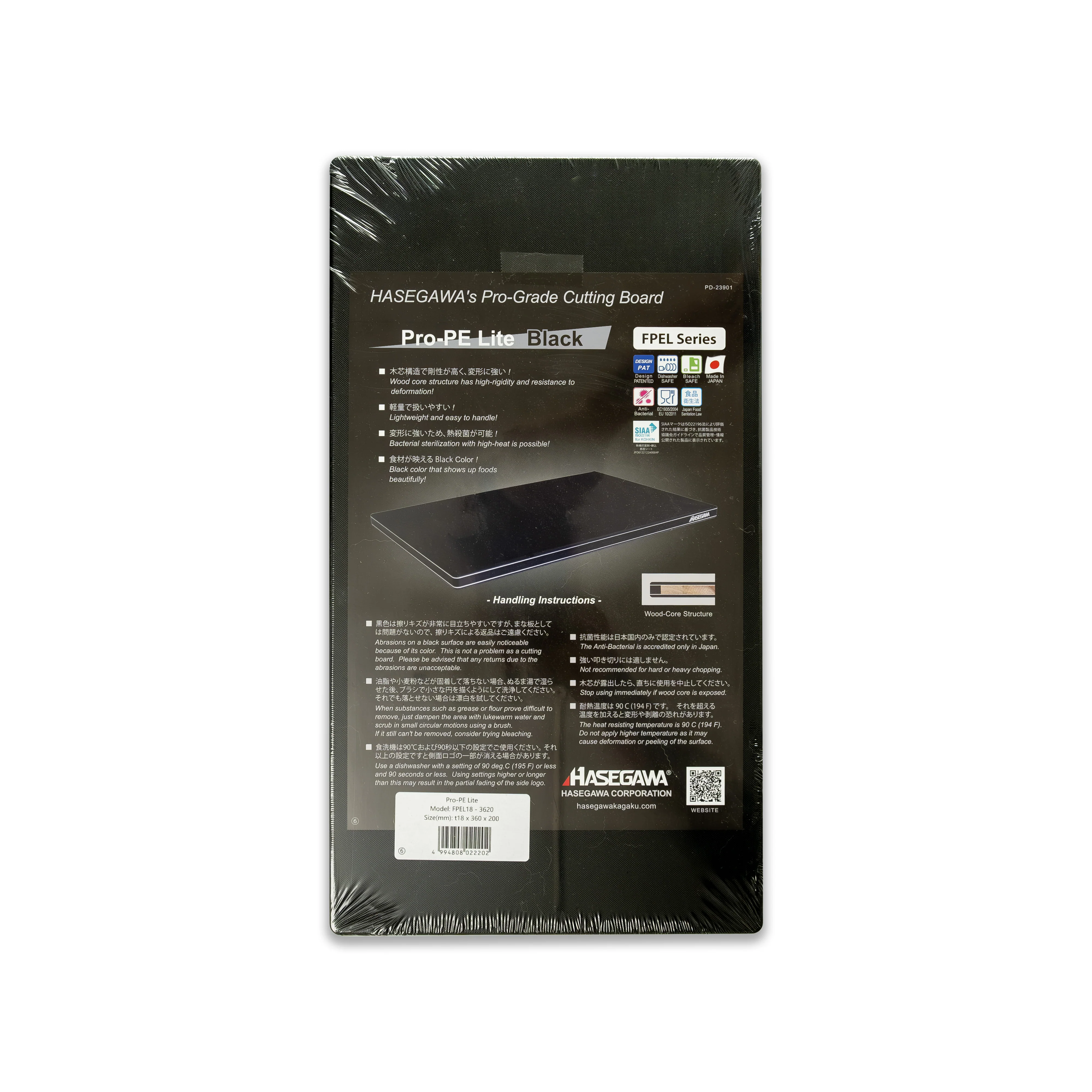 This luxurious Black FPEL Series from Hasegawa is lighter and slightly firmer than their regular line. The wooden core combined with the anti-bacterial Polyethylene exterior surface makes for a rigid board with easy cleaning and maintenance. Hasegawa's patented design is favoured amongst high-end restaurants for it's showcase like appeal, and practical function, as the boards surface is super gentle on your edge.