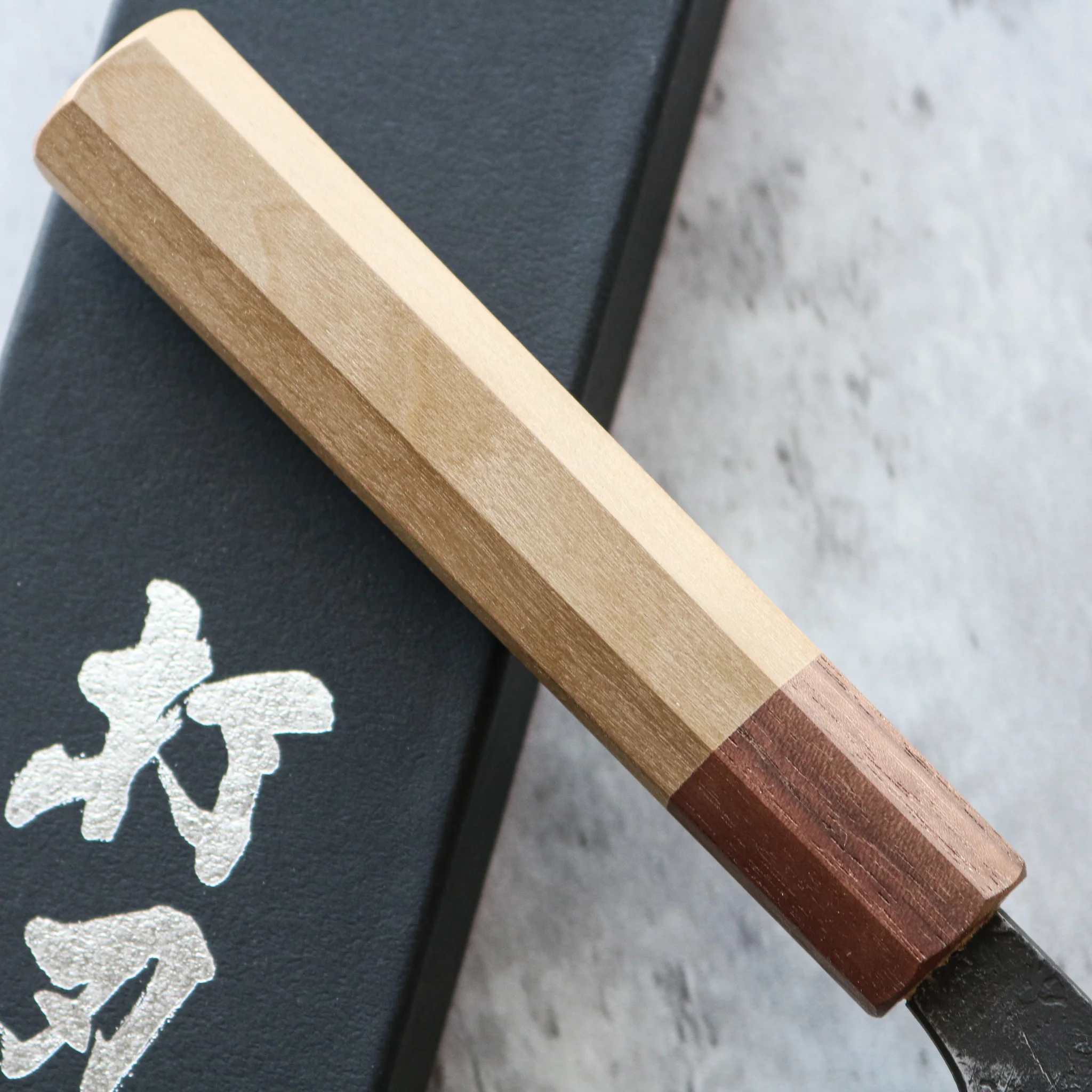 Mazaki-san is a relatively new blacksmith but has gained a reputation as a great knife maker in a short amount of time. He focuses on producing knives in the most traditional ways possible and completes each knife by himself, only having added his first team member (His wife who does not help with production), in the past year. Mazaki-san uses a combination of pre-laminated and in-house laminated steels in an effort to makes knives in the most traditional ways possible and finishes each knife by hand polishing them on Japanese natural whetstones. He worked at Yoshikane Hamono, another very well regarded knife maker, for a number of years but decided to pursue the dream of opening his own business and we could not be happier that he did! Mazaki-san’s knives typically have a nice, tall blade height, and the profiles are always evolving with each batch, giving them a distinctly unique look. The distal taper on his knives are characteristic of Sanjo region knives, coming thick out of the handle, and thin at the tip.